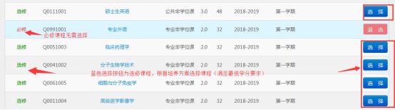 (若课程为必修,则系统自动选上且无法进行退选的操作,若课程为选修,则学生根据培养方案进行实际操作。)