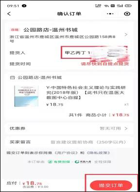 4.到学校教图中心将取货码交给工作人员核销领书。如订单信息有误,可选择申请退款。