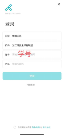 (二)方式二:电脑登陆浙江研究生课程联盟平台//zjyjs.zju.edu.cn/course/join/1BQ6B6KEMHJ。用户名:学号,初始密码:123456(请及时修改并牢记)。登录后进行学习。