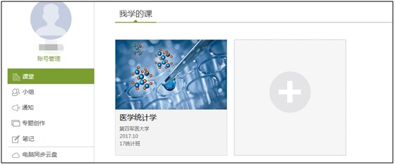 5、在个人主页可以查看当前学期平台课程的主页,通过点击课程主页进入该课程学习空间。